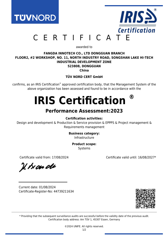 通過(guò)軌道交通行業(yè)全球最高管理體系標準:IRIS管理體系認證。